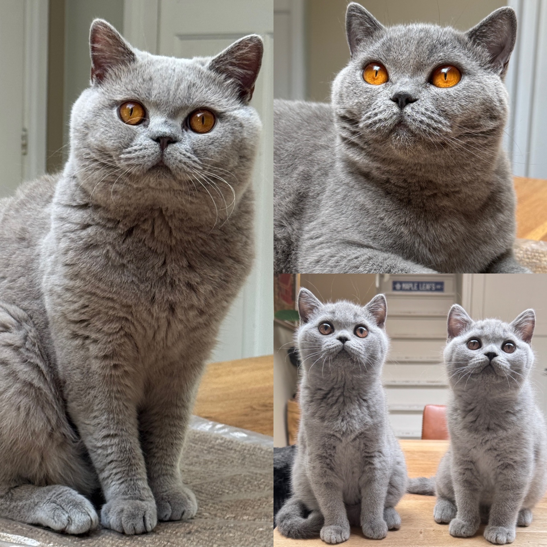 Tudor Blue Sands en Lila Landfire hebben een geslaagde date gehad! 5 prachtige blauwe kittens zijn er bij ons geboren. Helaas is het kittenmeisje overleden en zijn er 4 dikke katers hun heerlijk vol aan het drinken. Ik kijk enorm uit naar hun ontwikkeling. Lila is een zorgzame moeder en enorm relaxed.